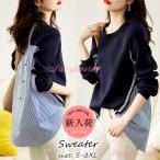 スウェットレディース 40代 秋冬長袖 スエットシャツ トレーナー おしゃれ 韓国風 トップス ボーダー切り替え プルオーバー カジュアル 可愛い 着痩せ30代50代