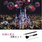 Langaelex スクラッチアート5個セット, 1枚405 x 285 MMドリーミー城と花火, 金属1本+竹1本 専用スクラッチペン +