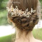 ウェディングヘッドアクセ ゴールド リーフモチーフ ラインストーン ナチュラル 花嫁